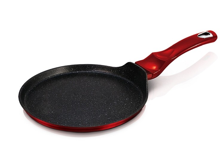 Elegantní červená pánev na palačinky značky Berlingerhaus se žáruvzdornou ergonomickou rukojetí, která při vaření nikdy nepálí. Palačinková pánev má netradičně snížený okraj, aby se vám těsto snadno obracelo. 3 vrstvý nepřilnavý povrch s mramorovým designem usnadní přípravu palačinek, ke kterým nemusíte přidat ani kapku oleje navíc.