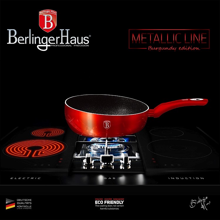Jídlo promíchané vyhození do vzduchu způsobuje wau efekt. S prohazovací pánví od značky Berlingerhaus budete oslňovat už při samotném vaření. Prohazovací pánev vás zaujme na první pohled svým zvýšeným okrajem. Je vyrobená z kovaného hliníku s 3vrstvým nepřilnavým mramorovým povrchem pro vaření s minimem tuku. Turbo indukční dno efektivně a rovnoměrně rozvádí teplo s nižší spotřebou