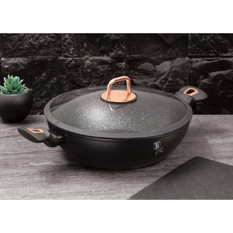 S Wok pánví Berlingerhaus z kolekce Black Rose si usnadníte vaření oběda či večeře. Využijete ji pro přípravu asijských pokrmů, masa, zeleniny a dalších pochoutek. Je vhodná na všechny druhy sporáků, včetně indukce. Dokonce ji použijete pro zapékání v troubě až do teploty 160 °C.