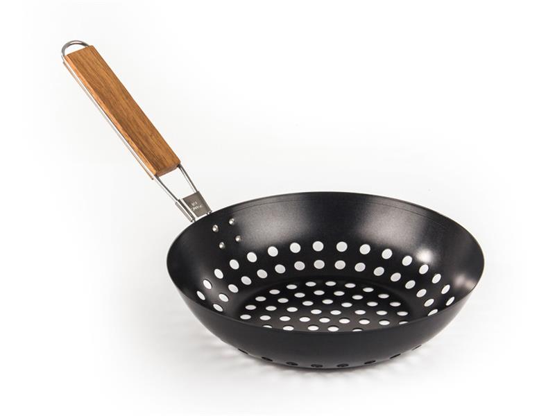 Pořiďte si nepřilnavou grilovací pánev G21 o průměru 28 cm pro grilování na plynových grilech i na grilech na dřevěné uhlí. Kulatá grilovací pánev má po celém svém povrchu otvory o průměru 10 mm. Proto se zelenina i maso grilují rovnoměrně, ale zároveň nepropadávají do ohně, i když jsou rozkrájené na menší kousky. Proč použít grilovací pánev…