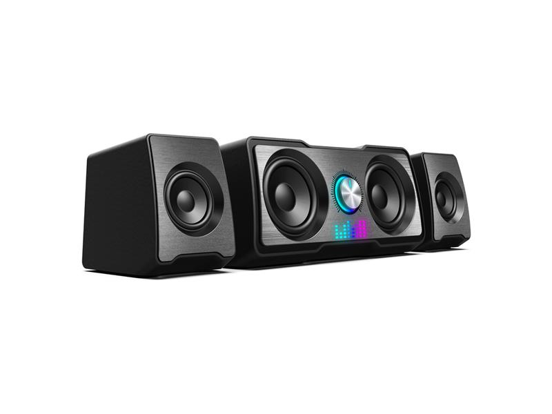 Elegantní 2.1 stereo reproduktory minimálních rozměrů, napájené přes běžné USB rozhraní. Ideální volba pro posílení zvukového zážitku z Vašeho notebooku, netbooku anebo PC. Přenos audio signálu standardním 3,5mm audio konektorem. Ovládání hlasitosti na přední straně reproduktoru. Kompaktní rozměry umožňují umístit satelitní reproduktory na váš pracovní stůl vedle obrazovky nebo notebooku, a přesto budete mít dostatek pracovního prostoru.