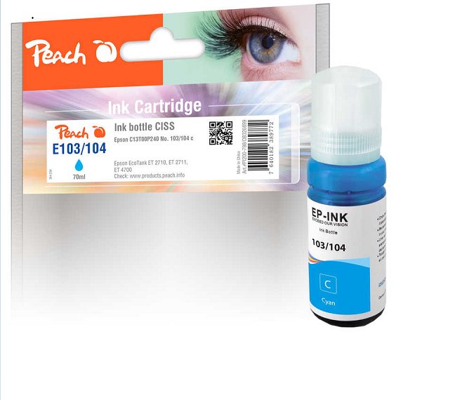 PEACH kompatibilní cartridge Epson No. 103/104, C13T00S240, C13T00P240, cyan 70ml