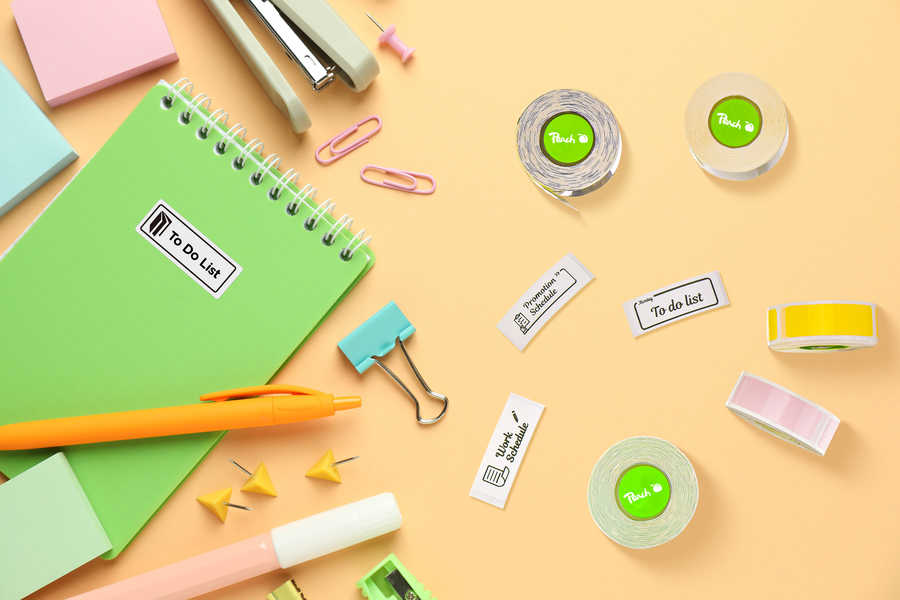 Etiketová role do štítkovače Peach PE110, žlutý/růžový/modrý