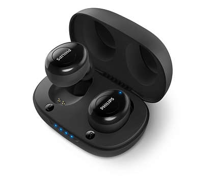 Užívejte si zvuk pohodlně. Tato sluchátka do uší nabízejí skutečnou svobodu bezdrátového připojení a provedení malých sluchátek, která bezpečně padnou. Získáte až 12 hodin přehrávání a malé nabíjecí pouzdro, které snadno vklouzne do kapes a tašek.