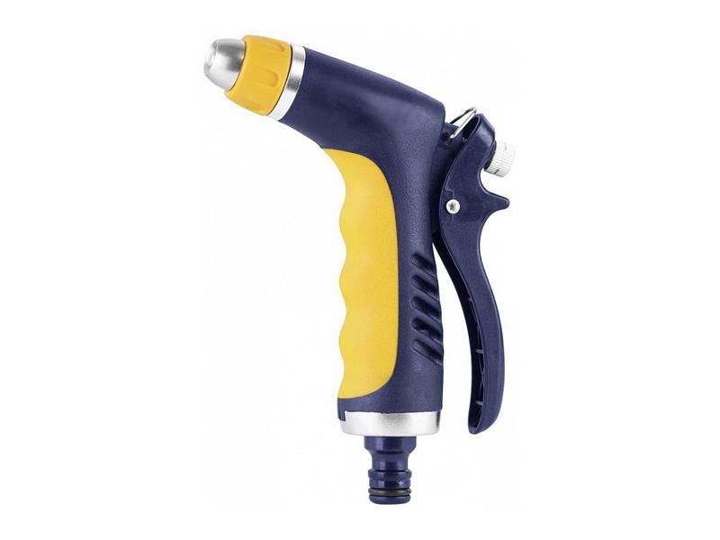 Zavlažovací zahradní pistole se 2 druhy stříkání. Od mlhy až po silný proud, intenzitu postřiku lze plynule měnit.