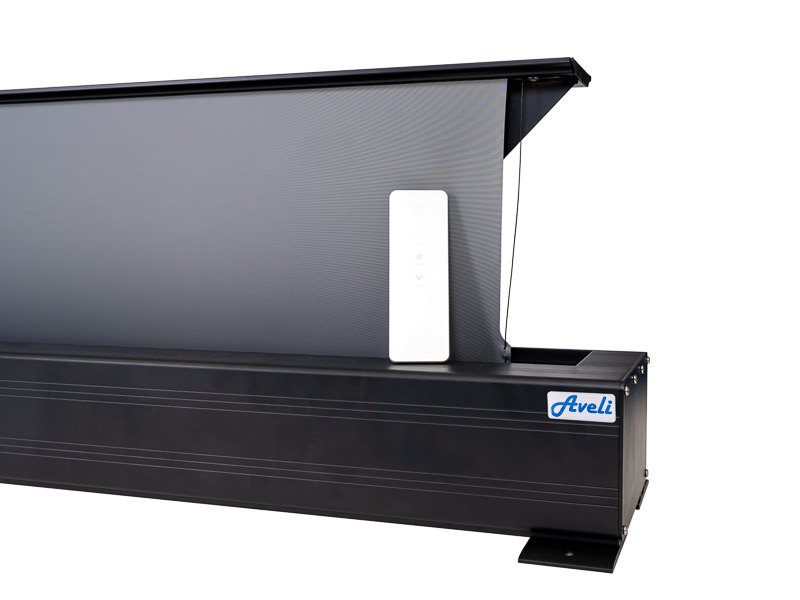 Mobilní/vestavné projekční plátno AVELI ALR PREMIUM pro krátkou a ultrakrátkou projekci s elektrickým pohonem. Využití business nebo Home Cinema. Díky speciálnímu šedému povrchu vynikají všechny barvy.