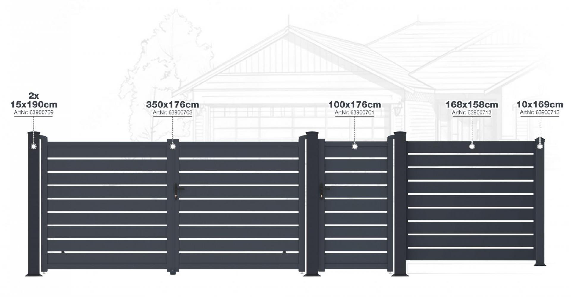 - Moderní hliníkové branky, brány a plotová pole řady G21 Reno kombinují robustnost s lehkostí, což zajišťuje dlouhou životnost a odolnost vůči povětrnostním vlivům.