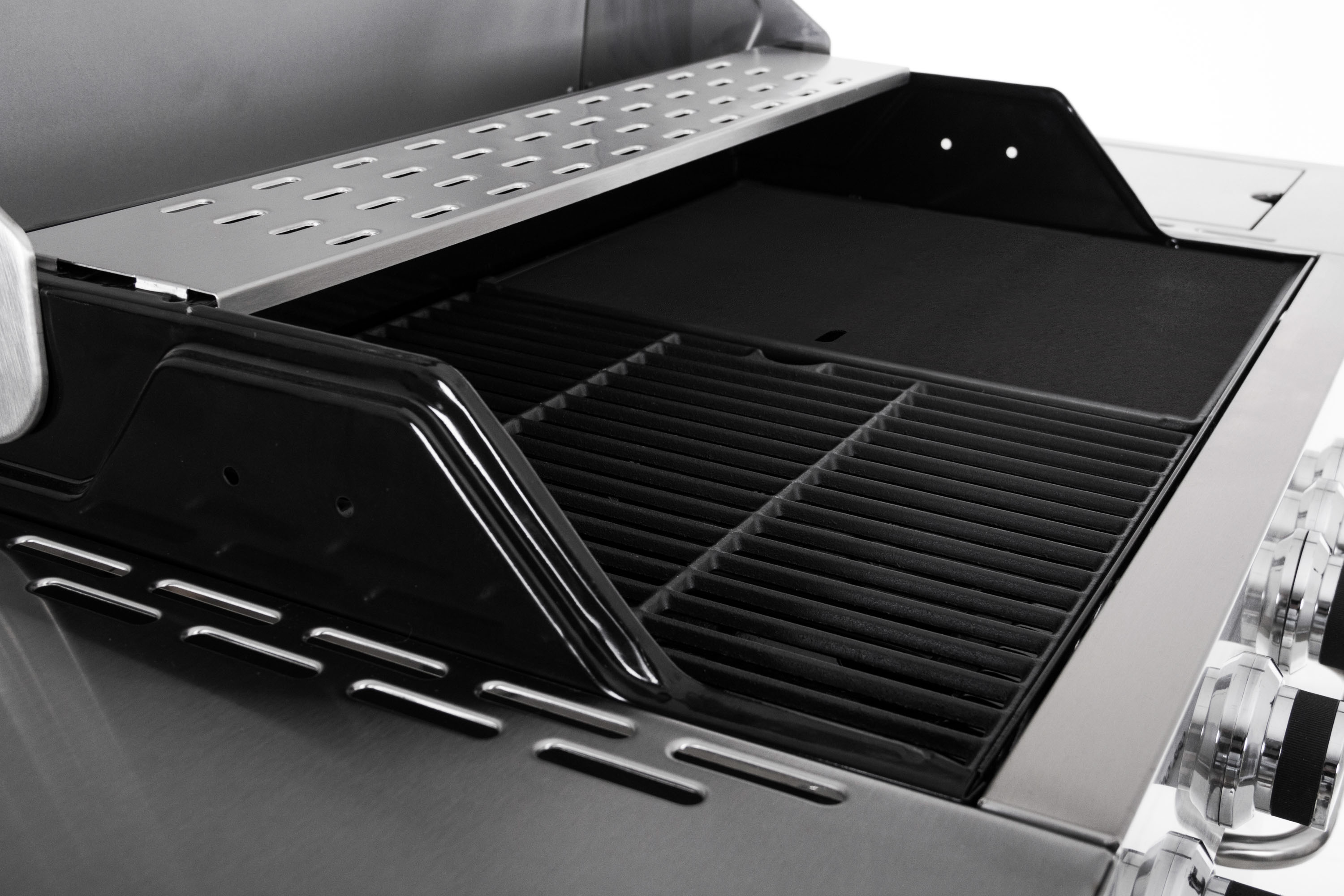 - systém Flame Tamer se smaltovanými kryty hořáků chrání hořáky před odkapávajícím tukem a prodlužuje jejich životnost