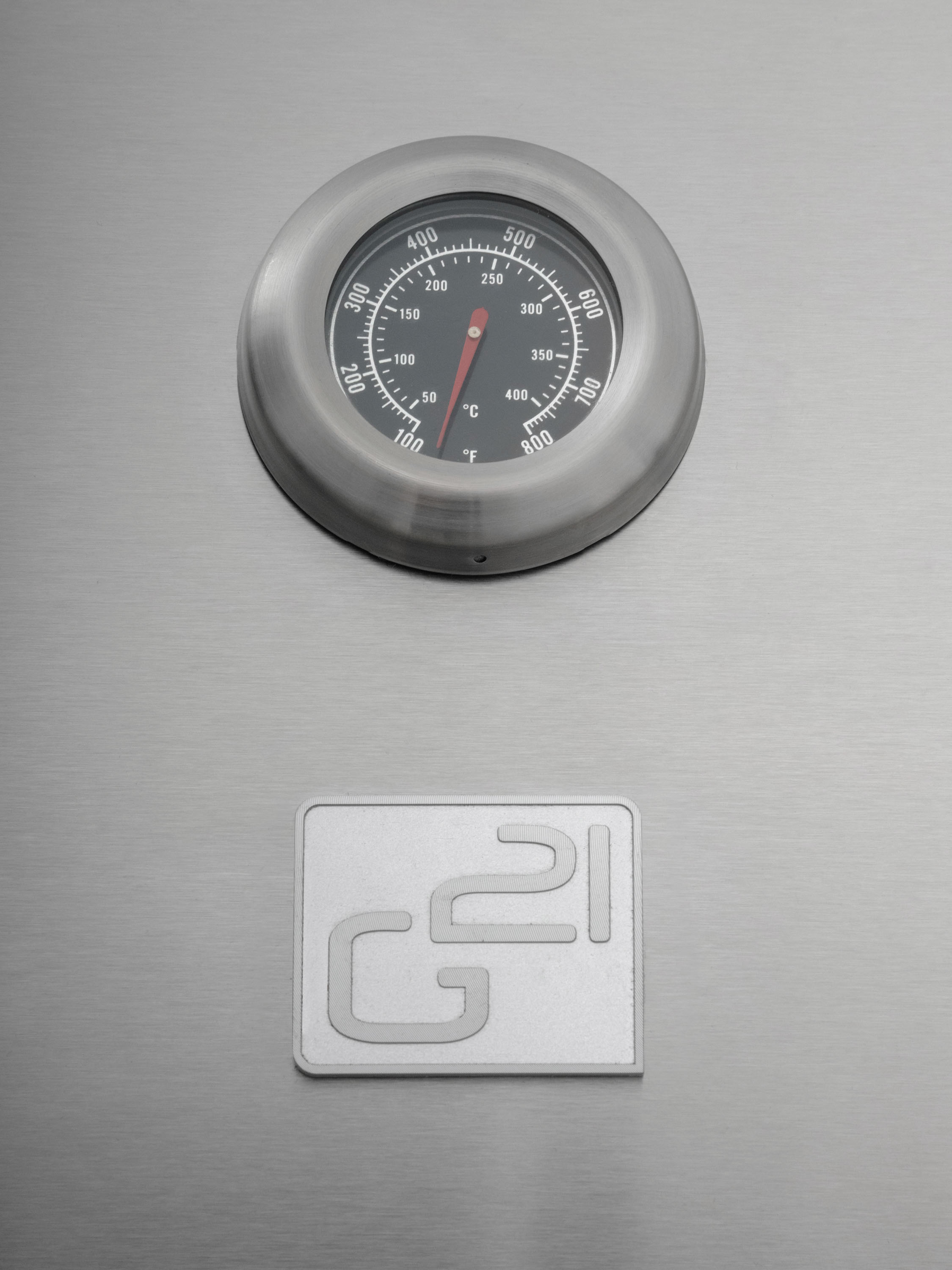 Nerezový gril G21 Argentina je opatřen dvouvrstvým odklápěcím víkem pro zajištění optimální teploty při grilování. Teploměr, prakticky zabudovaný ve víku, vám dá přehled o aktuální teplotě pod víkem, takže se nemusíte bát spáleného nebo naopak nedopečeného masa.