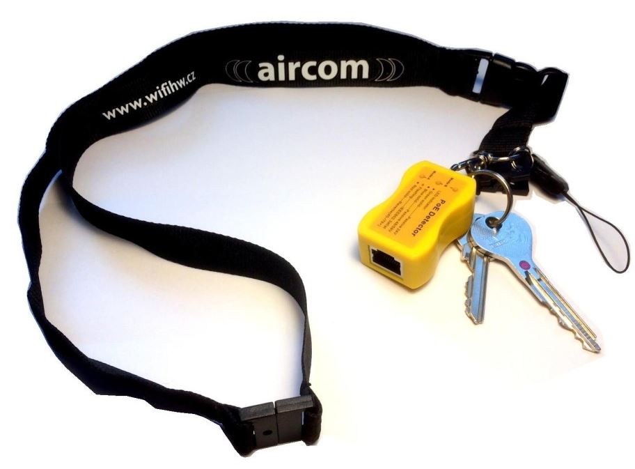Praktický kapesní pomocník v provedení klíčenky umožňující detekci vedení napájení po ethernetových kabelech.