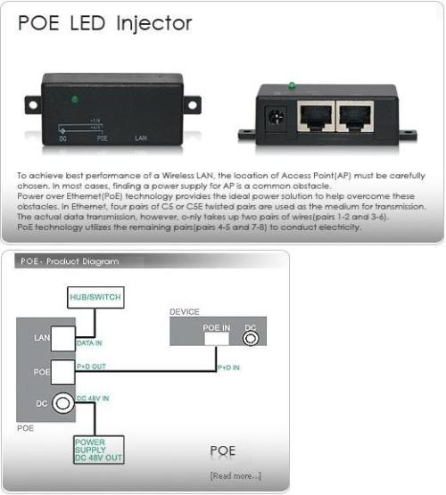 Univerzální pasivní POE injektor pro vzdálené napájení aktivních