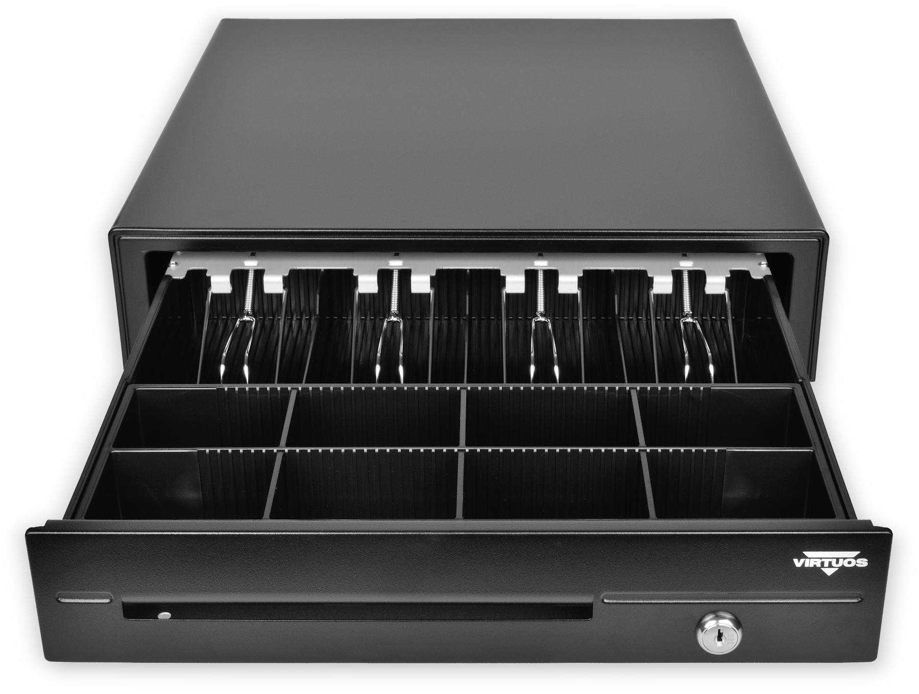 Pokladní zásuvka C420D - s kabelem, kovové držáky, 9-24V, černá