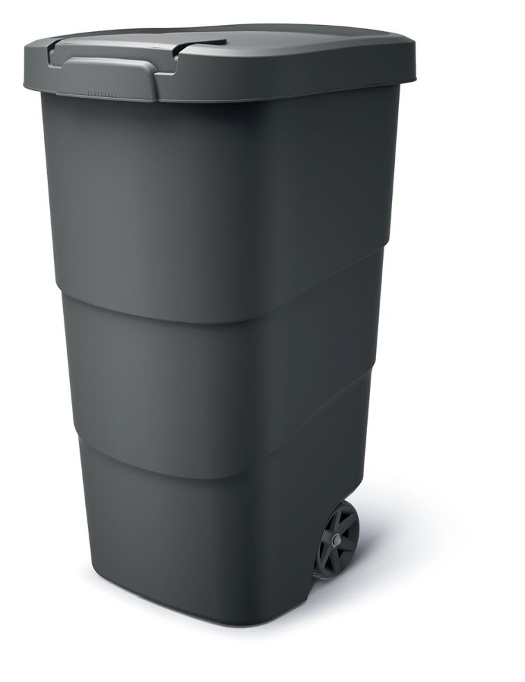 Do popelnice Prosperplast Wheeler s objemem 110 l se vejde velké množství odpadu. Je vybavená dobře těsnícím víkem. Díky němu neucítíte nepříjemné pachy vyhozených věcí, i když projdete kolem popelnice. Na recyklovaném víku navíc najdete praktickou západku. Pokud venku fouká silný vítr, zabrání nechtěnému otevření popelnice. Nemusíte se tedy obávat, že by se vám její obsah vysypal.