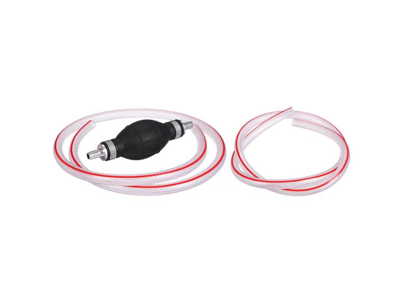Praktická sada ručního čerpadla neboli přečerpávače paliva se dvěma metrovými hadicemi MECHANIC MANUAL PUMP SET 10 pro palivové hadice s vnitřním průměrem 10 mm. Ruční čerpadlo slouží pro vypouštění paliva, přečerpávaní kapalin a dalších kapalných látek jako je olej, voda, dokonce i pivo. Je vyrobeno z kvalitního kaučuku a hliníku, což zaručuje dlouhé bezproblémové používání. Je vybaveno zpětným ventilem, který zabraňuje zpětnému toku kapaliny a tak je jeho ovládání velmi jednoduché. Na pumpičce jsou šipky, které určují směr proudění kapaliny.