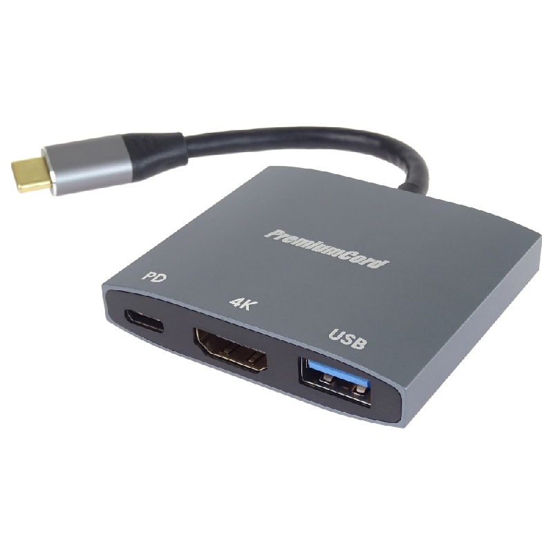 PremiumCord adaptér USB-C na HDMI, USB3.0, PD, rozlišení 4K a FULL HD 1080p