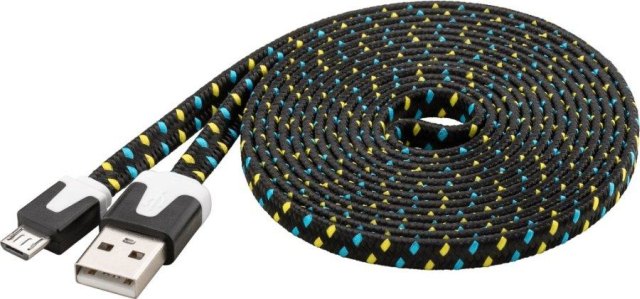 PremiumCord Kabel micro USB 2.0, A-B 2m, plochý textilní kabel, černo-modro-žlutý