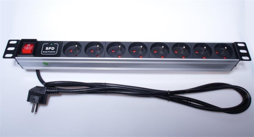 PremiumCord Panel napájecí 1U do 19" racku, 8x230V, 2m kabel, vypínač, přepěťová ochrana