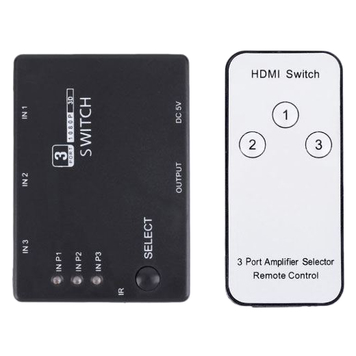 HDMI přepínač / switch 3x HDMI s ovládačem PS3. Umožňuje přepínat 3 HDMI vstupy manuálně nebo dálkovým ovládáním. Automatické přepínání na poslední aktivní vstup.