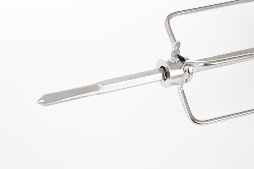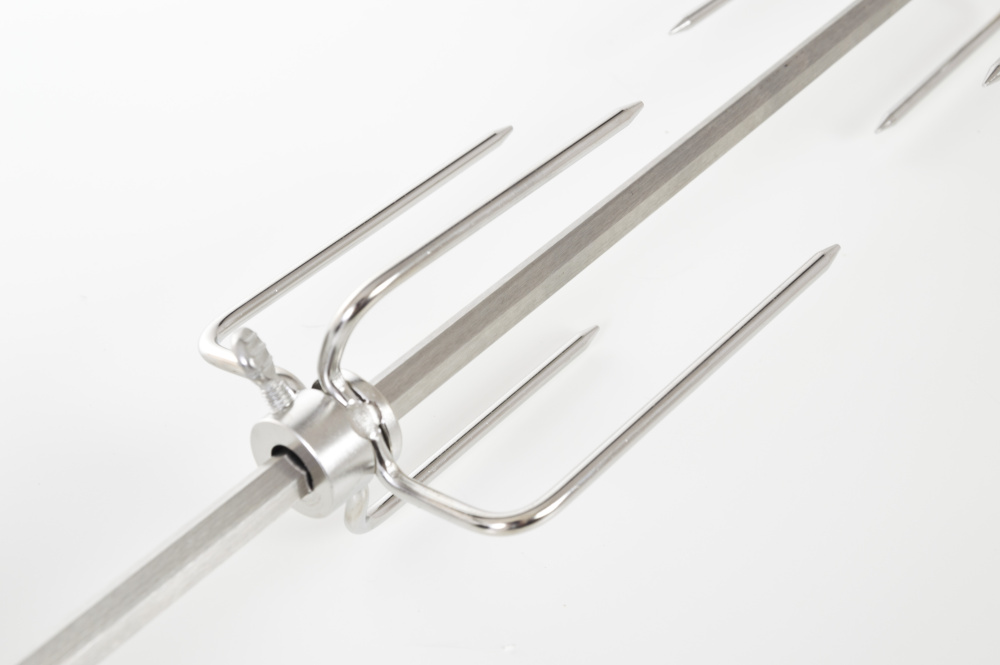 Grilovací jehla s motorem je vyrobena z nerezové oceli a z obou stran je opatřena čtyřmi jehlicemi s aretačními šrouby, díky kterým si můžete jehlice nastavit podle vlastní potřeby.