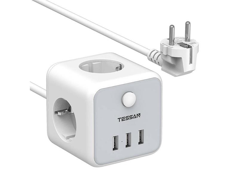 Pohodlně napájejte svá základní zařízení a usnadněte si pořádek na stole. Prodlužovací kabel TESSAN TS-301 je vybaven 3 AC zásuvkami a 3 USB-A porty, takže k němu můžete připojit až 6 zařízení současně. Vyniká také svým kompaktním designem - nezabere příliš místa na vašem stole a nebude problém s jeho případným transportem. Máte také možnost jej nalepit na povrch dle vašeho výběru pomocí 3M pásky.