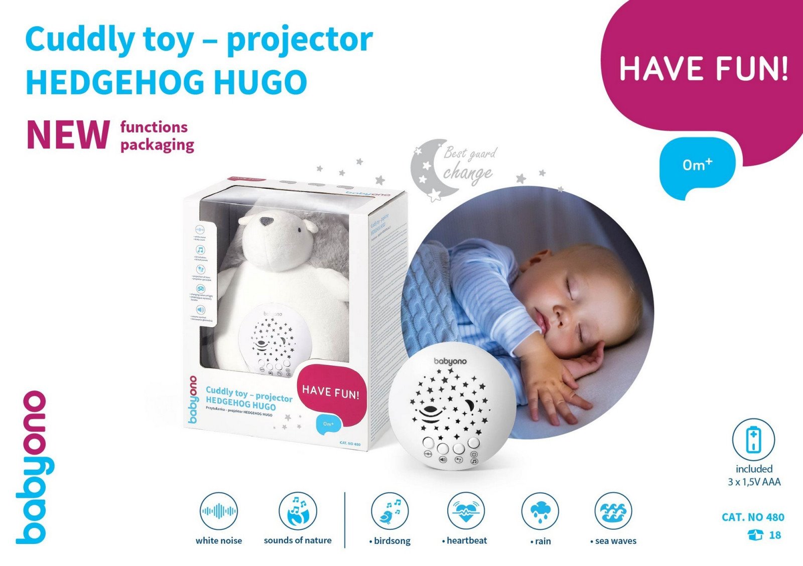 Ježek HUGO značky BabyOno vás zaujme svým multifunkčním využitím. Jedná se o dětskou hračku, která v sobě má zabudovaný projektor a zároveň také umí přehrávat různé melodie. Ježka skvěle využijete pro zklidnění nebo uspávání svého dítěte. Velmi podstatnou výhodou je vyjmutí vnitřního mechanismu a následné praní Ježka HUGA v pračce. Hračku můžete využít pro nejmenší děti už od narození.