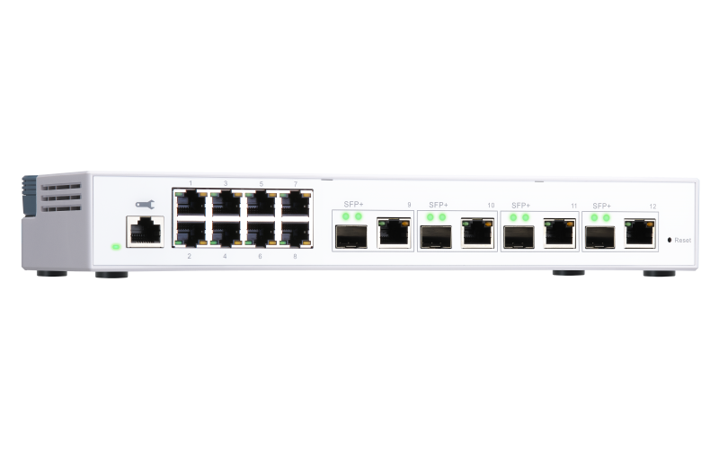 QNAP řízený switch QSW-M408-4C (12 portů: 8x Gigabit port + 4x 10G SFP+ / 10GbE kombo porty)