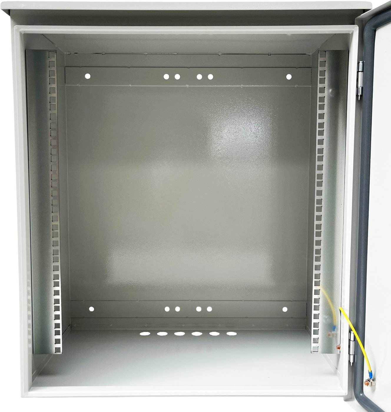 Rozvaděč je vyrobený z ocelových plechů o tloušťce 1,5 mm. Je vybavený dvojicí zámků se stejným klíčem. Zabezpečíte svá zařízení tak, abyste se k nim dostali jen vy. Na spodní straně se nachází 6 otvorů o průměru 25 mm s gumovými průchodkami. Na zadní části najdete 12 otvorů pro co nejpohodlnější uchycení ke stožáru či na zeď. Pokud některé z nich nevyužijete, oceníte gumové záslepky (součástí balení).