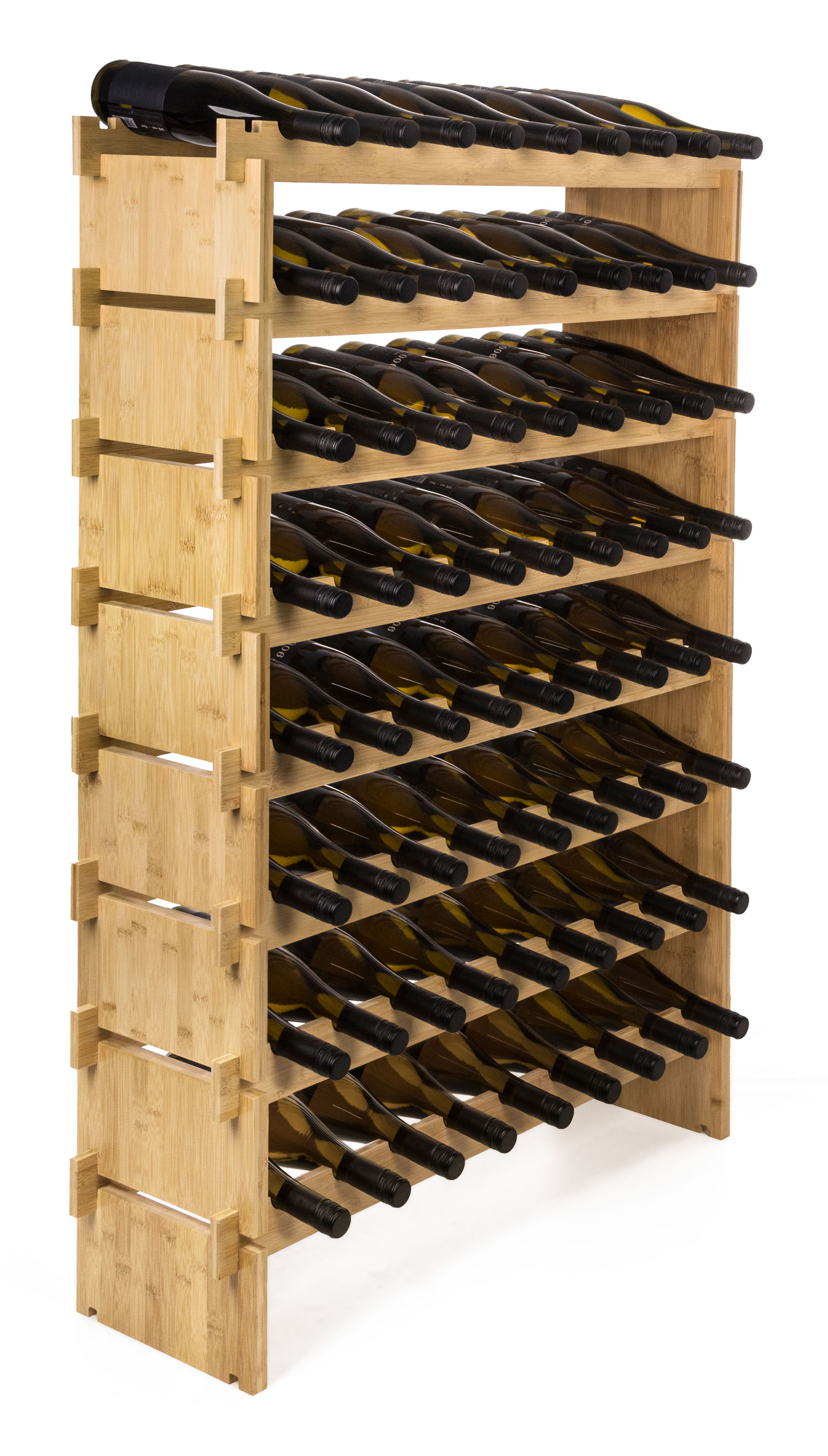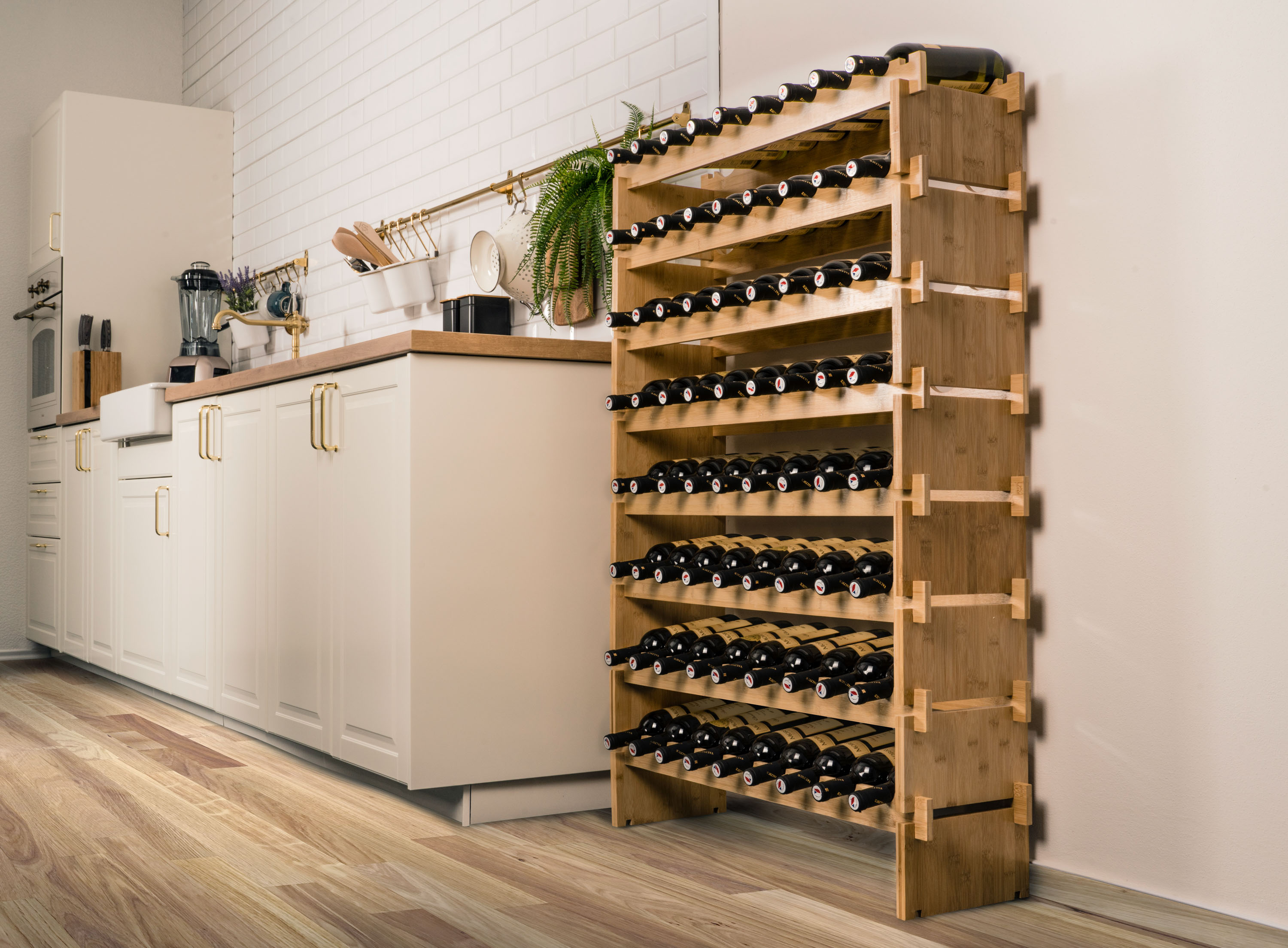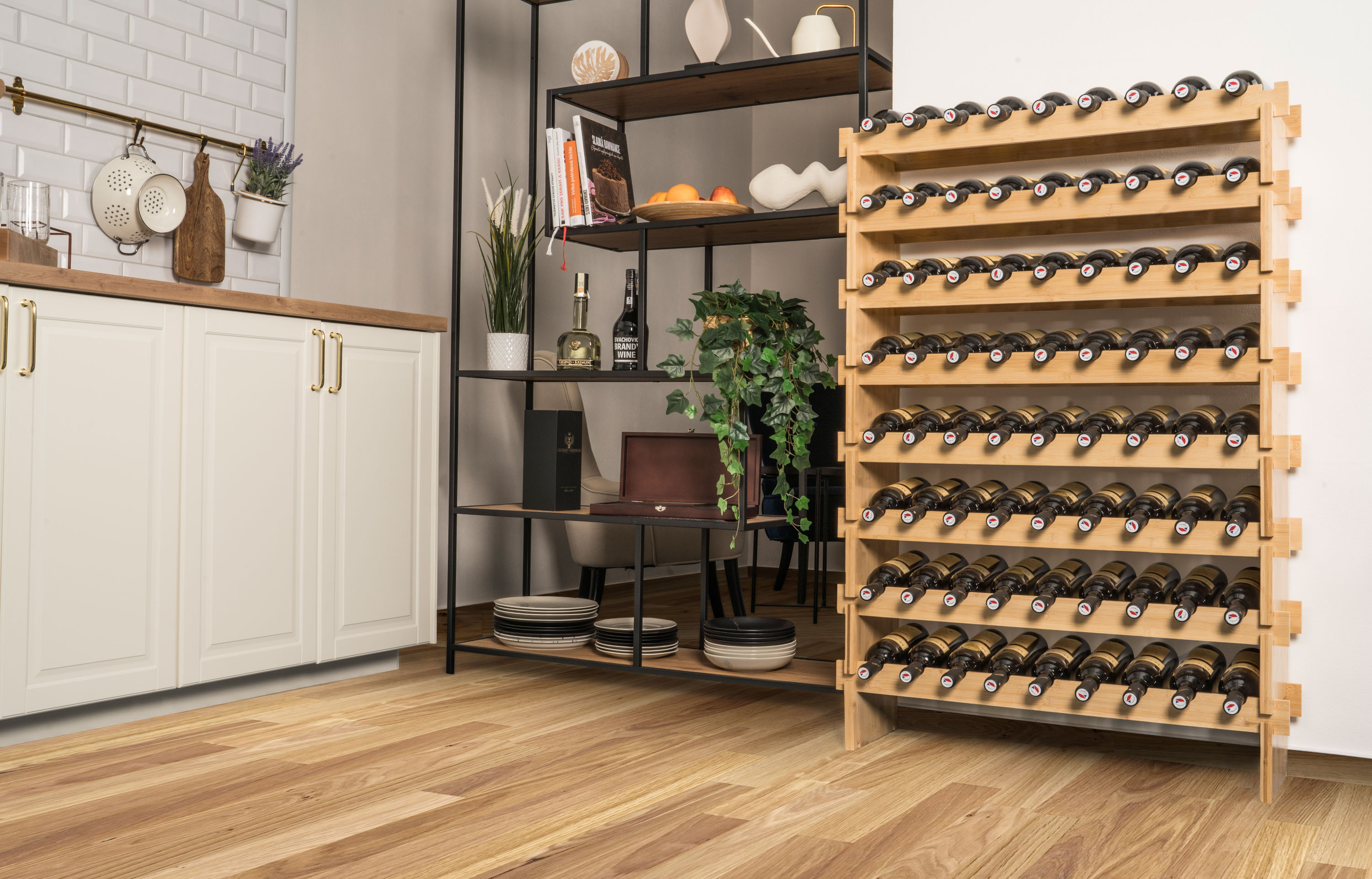 Pořiďte si designově čistý a zároveň praktický stojan na 72 lahví vína. Precizně zpracované bambusové dřevo mu dává příjemný přírodní vzhled, takže stylově doplní každý interiér. Hlavní ale je, že jsou v něm láhve bezpečně a správně uložené, nedochází k vysychání korku a snadno se v nich orientujete.
