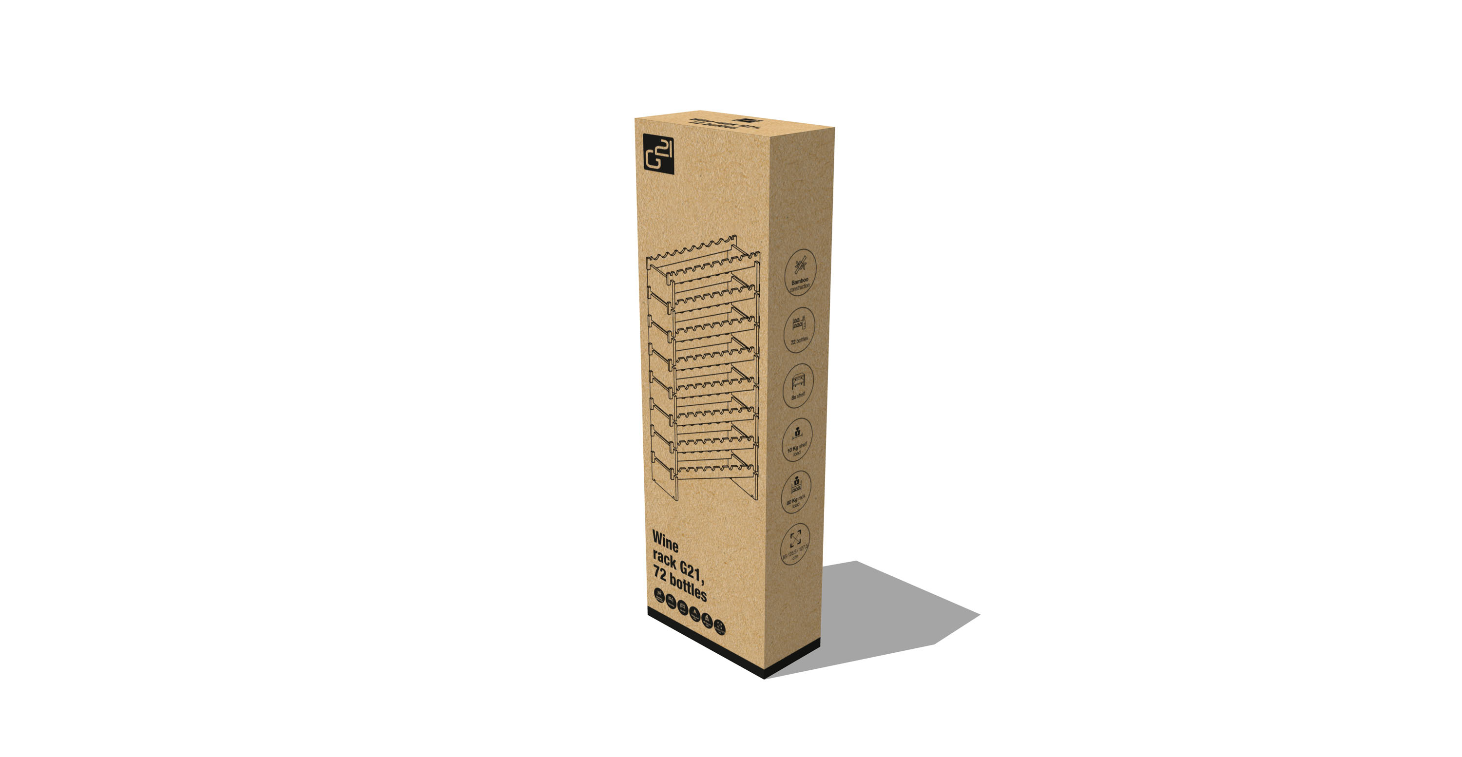 Stojan G21 má v bočních lištách výřezy – na zadní straně větší, na přední straně přesně na velikost hrdla vinné lahve. Lahve jsou v něm bezpečně a spolehlivě položené a nedojde k jejich rozbití.