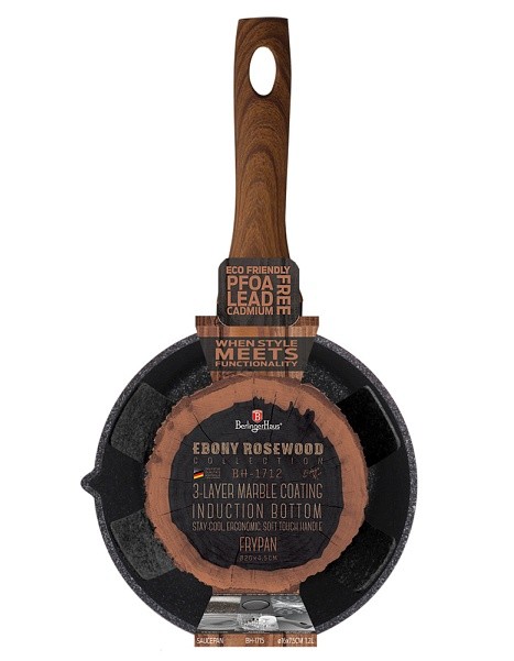 Rendlík kolekce Ebony Line Rosewood značky Berlingerhaus má objem 1,2 l. Hrnec je vyrobený z kovaného hliníku s 3vrstvým mramorovým povrchem, který je chrakteristický svou nepřilnavostí a perfektní tepelnou vodivostí. Rendlík je vhodný na všechny druhy ohřevu, včetně indukce i do myčky nádobí. Hrnec má Turbo indukční dno pro efektivní vaření a ergonomicky měkčené rukojeti pro snadný a pohodlný úchop. S tímto hrnce můžete při vaření ušetřit až 35% energie.