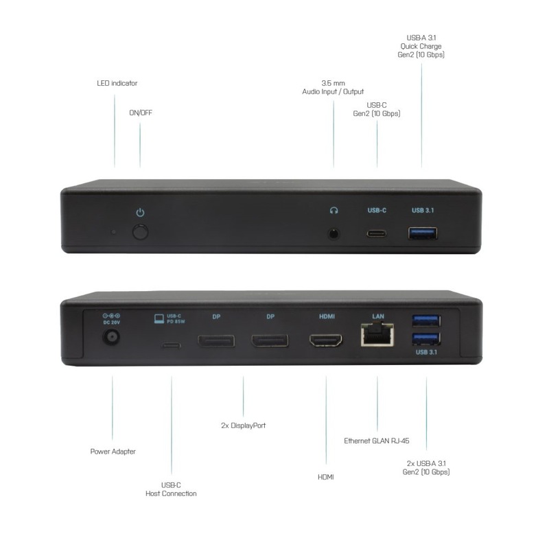REPASE I-tec USB-C / Thunderbolt 3 Triple Display Docking Station, Power Delivery 85W