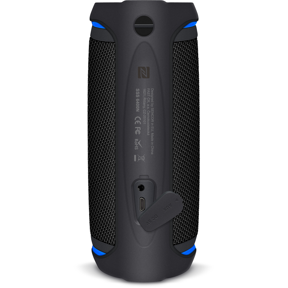Bluetooth reproduktor SSS 6400N Sirius značky Sencor je kompaktní voděodolný reproduktor s 360° prostorovým zvukem a stupněm krytí IPX6. Umožňuje poslech oblíbené hudby ze smartphonu nebo tabletu prostřednictvím bezdrátového Bluetooth připojení do vzdálenosti až 15 m. Výkonný a čistý zvuk zajišťují dva reproduktory s maximálním výkonem 30 W a dva pasivní zářiče.