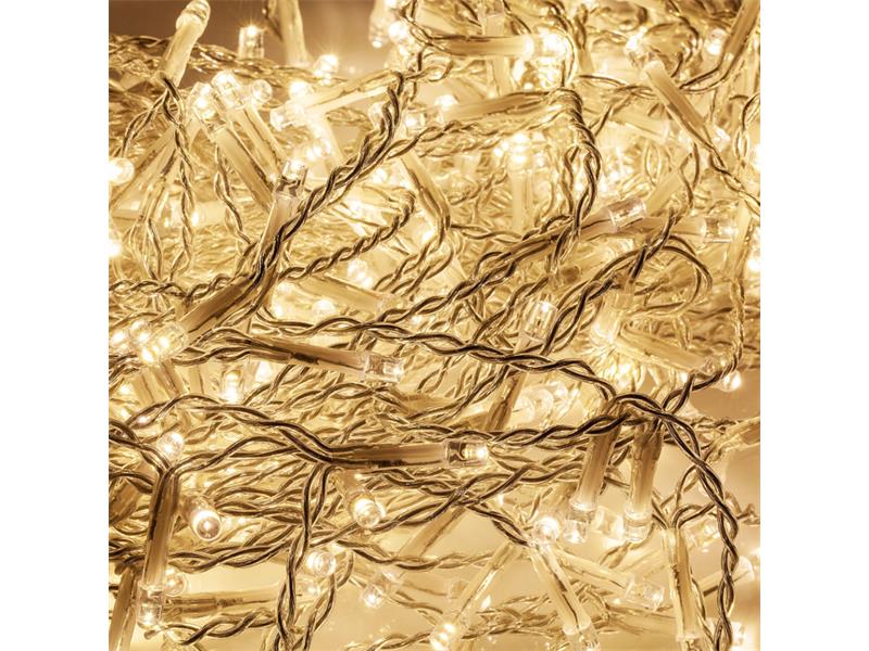 Řetěz vánoční Technické parametry: - Napětí: 31 V - Výkon: 6 W - Proud: 193 mA - Počet LED: 330 - Počet řetězců: 33 - Počet LED v jednom řetězci: 10 - Délka: 5 m - Vzdálenost mezi LED: 7 cm - Vzdálenost mezi řetězci: 15,5 cm - Délka kabelu od připojte k první LED: 1,8 m - Krytí: IP44 - Provozní teplota: -20 ° C ~ + 40 ° C - 8 světelné módy…