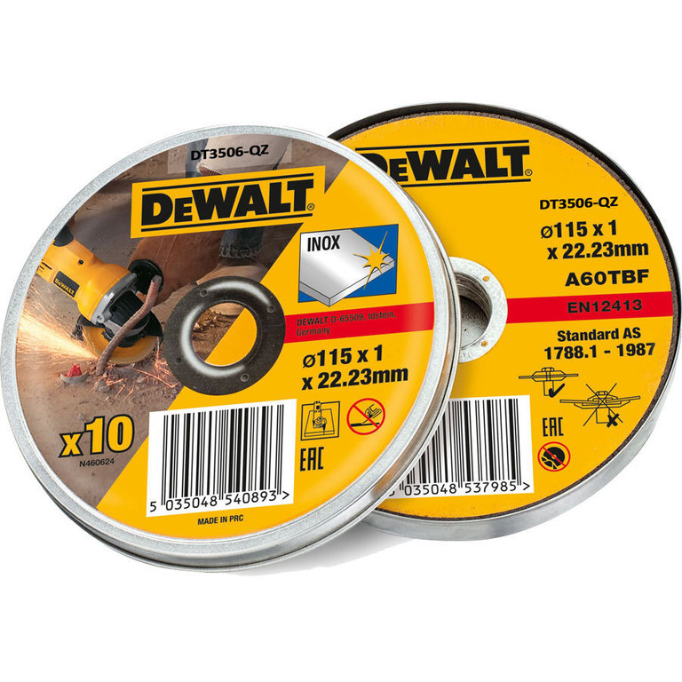 - 10dílná sada řezných kotoučů Dewalt DT3506 pro použití s úhlovými bruskami rozřízne ocel i jiné kovy bez otřepů nebo zabarvení do modra