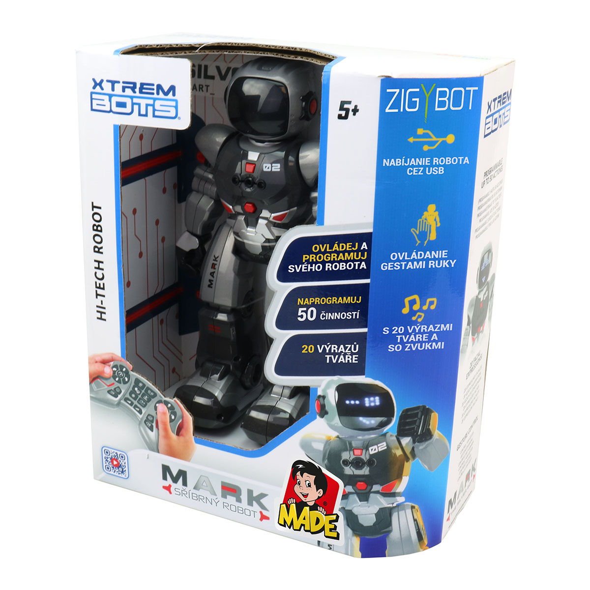 Interaktivní robot Mark značky Zigybot se stane skvělým dárkem pro vaše dítě. Umí mluvit, měnit výrazy ve tváři a vydává také zábavné robotické zvuky. Dokáže chodit nebo jet dopředu, vpravo, vlevo a dozadu. Rychlost jeho pohybu můžete libovolně změnit. Předvede vám i vtipný robotický tanec. Je ideální pro děti od 5 let.