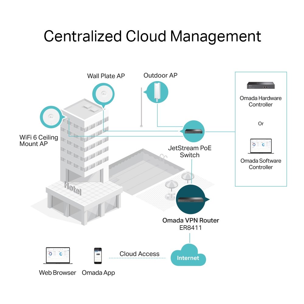 - Centralizovaná správa pomocí cloudového přístupu a aplikace Omada