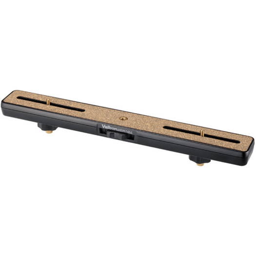 Destička Velbon Super Mag Plate pro rychlé uchycení dvou zařízení na stativ. Upínací šrouby jsou šířkové polohovatelné. Upnutí na stativ (hlavu) pomocí 1/4" nebo 3/8" šroubu.