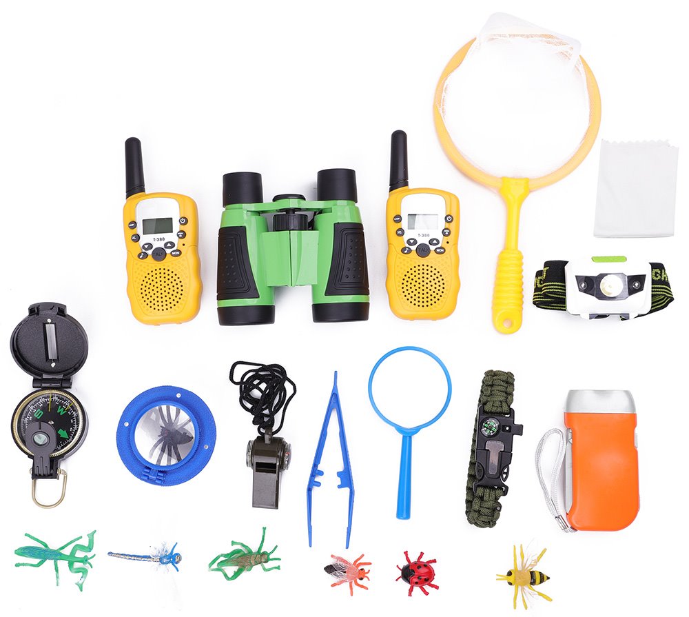 Dětská průzkumnická sada Discovery Basics EK90 Explorer Kit je určená pro všechny malé zvídavce, kteří se chtějí ve své dospělosti stát uznávaným biologem. Skládá se hned z několika vysoce praktických pomůcek pro pobyt a výzkum ve volné přírodě – binokulární dalekohled, 2 vícekanálové vysílačky, nouzová píšťalka, kapalinový kompas, lupa, síťka na motýly, nádoba na hmyz, pinzeta, 6 hmyzích hraček, LED svítilna, náramek s křesadlem a sportovní vak s uzavíráním na šňůrky. Jedná se tak o nesmírně užitečný studijní set, který vám nesmí chybět, pokud rádi trávíte čas pozorováním drobného hmyzu nebo jiných živočichů.