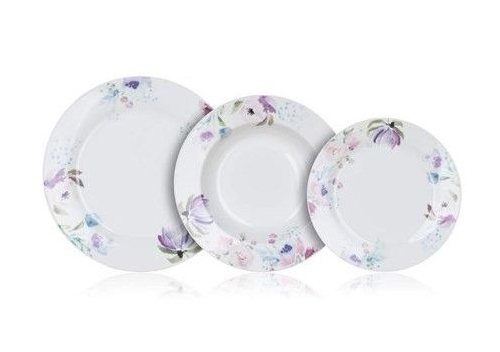 Sada nádobí PINK FLOWERS od značky Banquet nabízí 18 ks talířů, včetně dezertních, hlubokých i mělkých. Talíře jsou vyrobené z porcelánu, vhodné do mikrovlnné trouby i myčky. S barevným květinovým vzorem po okrajích.