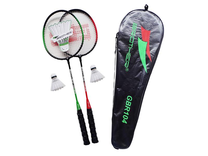 Badmintonová sada obsahuje 2 kvalitní ocelové odlehčené rakety. Pevný výplet napnutý na tah 8 - 9 kg zajišťuje dobré herní vlastnosti. Pevná omotávka se příjemně drží v rukách. Součástí balení jsou 2 košíčky na hru. Sada je uložena v nylonové tašce s potiskem. Sada je k dispozici ve dvoubarevném provedení pálek v červenočerné a zelenočerné barvě.