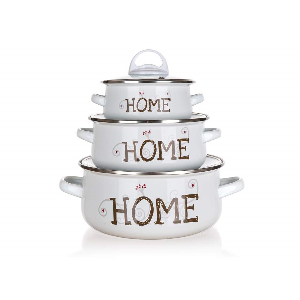 Doplňte si svou kuchyňskou výbavu 6dílnou sadou smaltovaných hrnců značky Banquet. V sadě najdete 3 hrnce různých rozměrů s elegantními skleněnými poklicemi, které jsou opatřeny plastovým úchopem pro snazší a bezpečnější manipulaci. Kovová madla hrnců zaručí jejich jednoduché přenášení. Nádobí je vyrobeno z kvalitního smaltu a můžete je bez obav mýt v myčce na nádobí. Sada je vhodná pro všechny typy sporáků - plynové, elektrické, sklokeramické a indukční. Ale nebojte se, dna hrnců jsou opatřena odpovídajícími piktogramy, takže už se ohledně jejich užívání nespletete. Tato sada se stane skvělým pomocníkem ve vaší domácnosti. Výhodou je možnost použití do trouby, ovšem bez skleněné poklice.