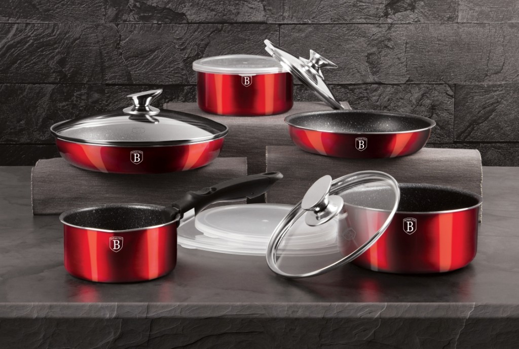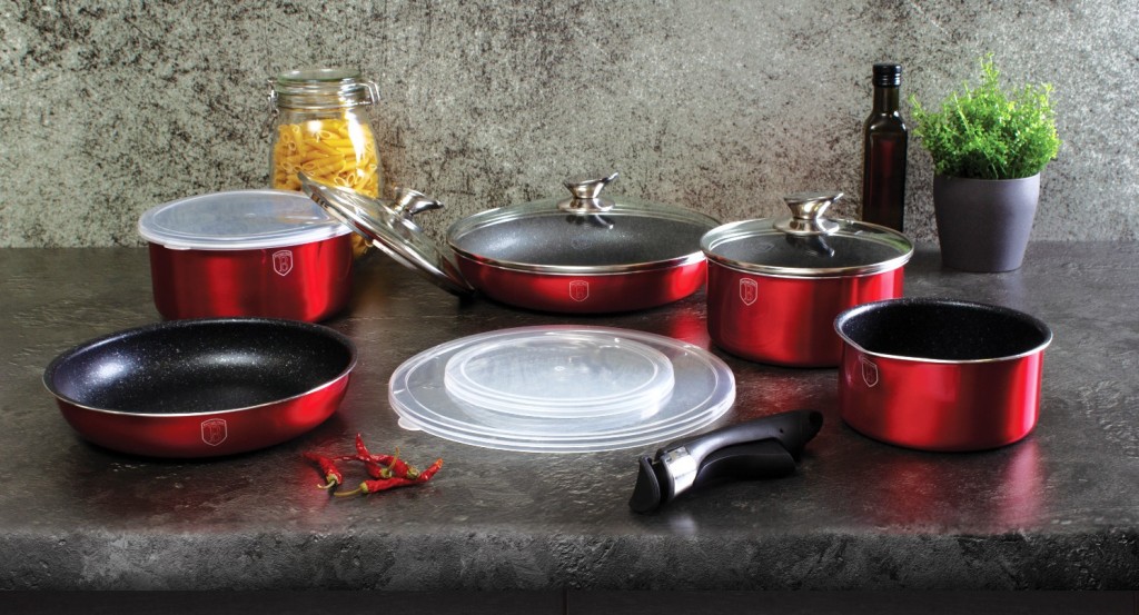 Jedinečná sada nádobí s odnímatelnou rukojetí z červené kolekce Burgundy Metallic Line. Doménou této sady je praktická Click rukojeť, díky které můžete celou sadu použít v troubě i na sporáku. Všechny nádoby jsou stohovatelné do sebe a tak vám celá sada nádobí v kuchyni zaberou pouze jednu poličku. Odnímatelná rukojeť je kompatibilní se všemi kusy nádobí. Je ergonomicky tvarovaná a pohodlně se drží. Její odejmutí a následné připnutí jedním pohybem trvá sotva vteřinu. Klidně můžete na sporáku vařit ve všech nádobách a libovolně mezi nimi rukojeť přepínat. Součástí sady jsou tři skleněné poklice a také tři skladovací víka, která nádoby spolehlivě uzavřou, když v nich budou například hotové pokrmy.