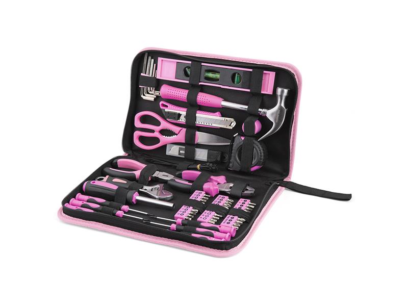 Stylová růžová brašna FIELDMANN v sobě ukrývá 71 dílnou sadu nářadí, která se bude hodit nejen každé kutilce, ale též každému členu domácnosti nejen v rodinné dílně, ale též na zahradě. Sada obsahuje šroubováky, bity, kladivo, kleště, nožík, svinovací metr,vodováhu a spoustu dalšího vybavení, bez kterého se praktická žena v domácnosti prostě…