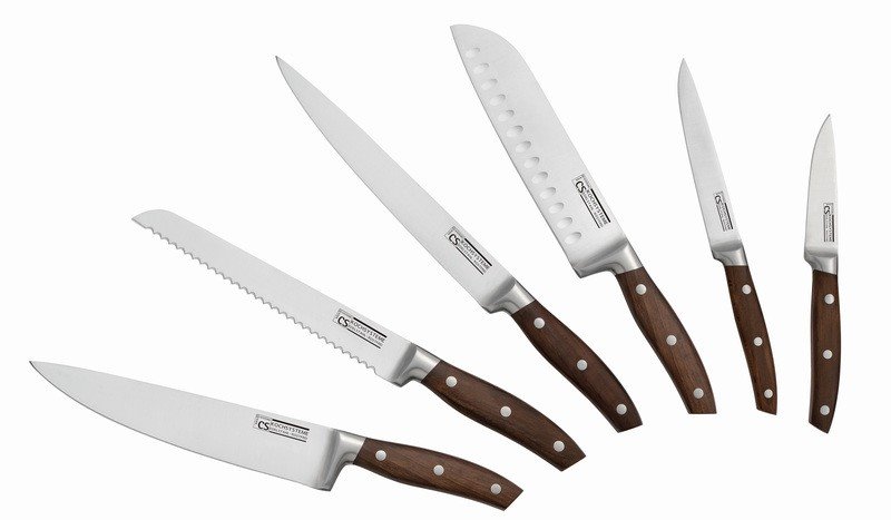Kuchyňské obracečky, naběračky a další náčiní je vyrobené z nylonu, který je žáruvzdorný až do 180 ? a navíc je naprosto šetrný k vašemu nádobí, které tak nikdy nepoškrábete. Čepele nožů z celokované nerezové oceli nabízí podstatně delší životnost a tento materiál rovněž snižuje potřebu broušení na absolutní minimum. Dřevěná rukojeť je opatřena 3 ocelovými nýty a bezpečnostní zarážkou, která spolehlivě ochrání prsty před ostrou čepelí a poskytuje tak daleko jistější úchop a kontrolu během krájení.