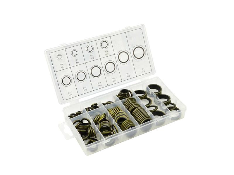 Praktická sada 150 kusů kovovo-gumových podložek.