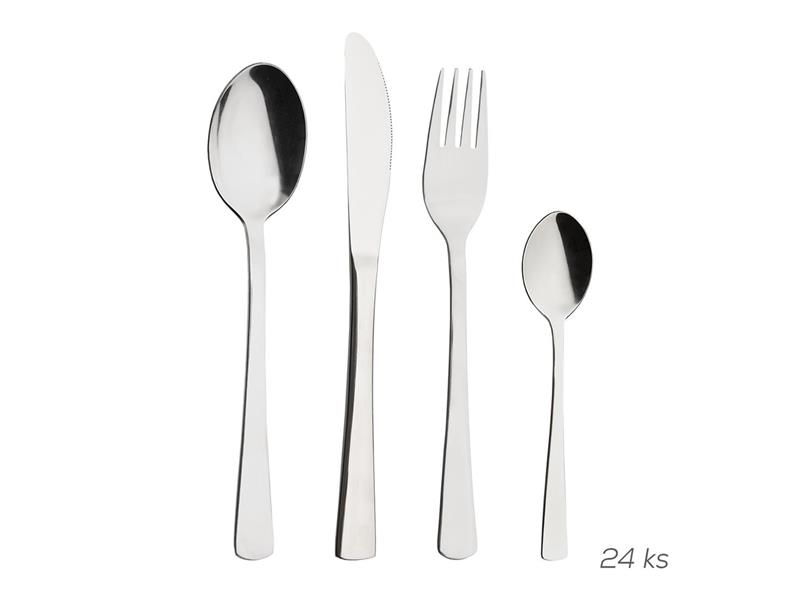 - Sada obsahuje: 6x lžíce (d. 19,5 cm), 6x vidlička (d. 20 cm), 6x nůž (d. 21 cm) a 6x čajová lžička (d. 13,7 cm)