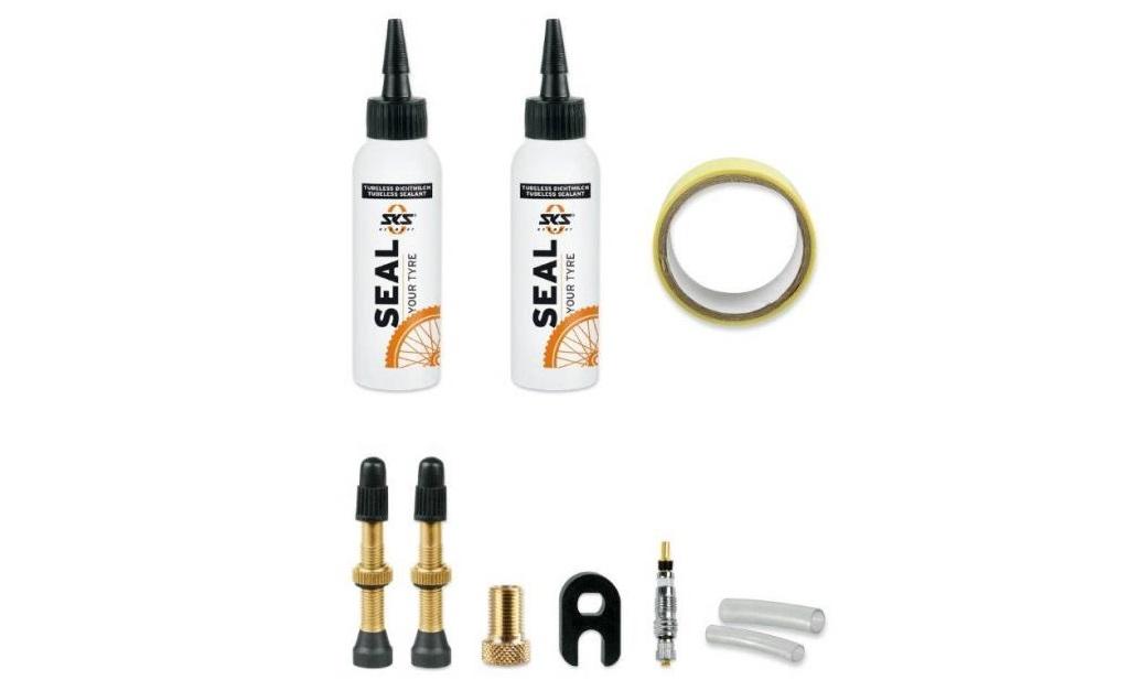 Kompletní set pro přechod na bezdušový systém pláštů. Směs je