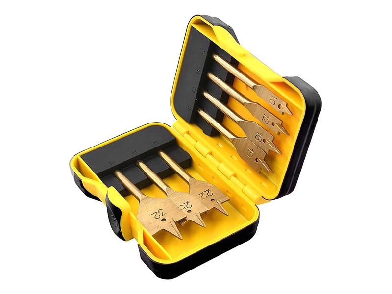 Praktická sada plochých vrtáků do dřeva v pouzdře. Ideální pro vrtání otvorů do tvrdého a měkkého dřeva.