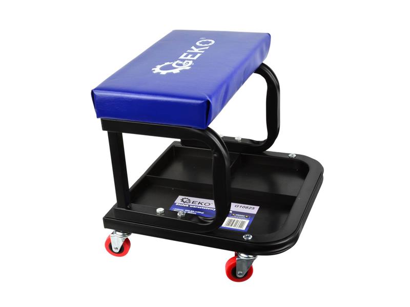 Pohodlné sedadlo potažené příjemným, odolným a snadno udržovatelným materiálem. Poskytuje pohodlí i po dlouhodobé práci. Pro zvýšení pohodlí při používání je židle vybavena policí na nářadí, klíče a šrouby, které používáme při práci. Nedělejte si starosti s nářadím na zemi! Celek je založen na čtyřech pevných, rotujících kolech, které umožňují pohyb v garáži.