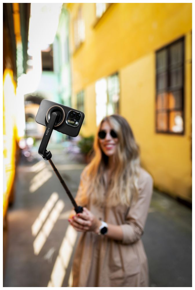 Teleskopická selfie tyč FIXED MagSnap se stane nepostradatelným pomocníkem při focení a natáčení. Využijete ho se svým smartphonem Apple iPhone s MagSafe funkcí. Místo klasických kleští, které se běžně u tohoto příslušenství vyskytují, totiž využívá tato selfie tyč plochy se silnými MagSafe magnety. Jednoduše a bezpečně uchytíte telefon v jakékoliv pozici – na výšku, na šířku. Magnety ho udrží i při prudkých pohybech.